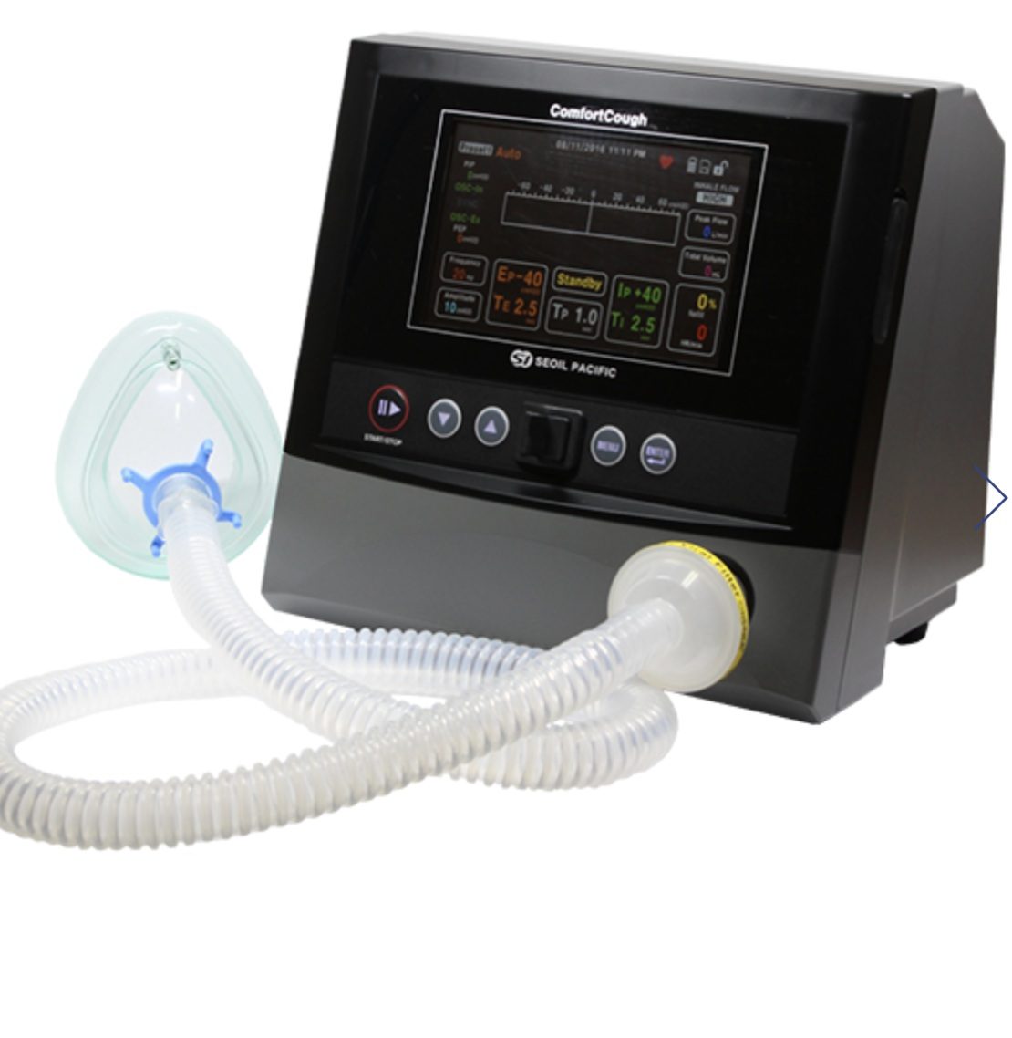 Cough Sync detects the patient breath and synchronize its therapy to the patient breath. It allows the patient easily to adopt MI-E therapy.