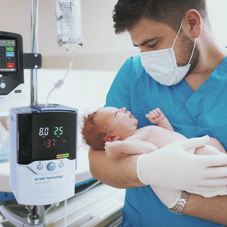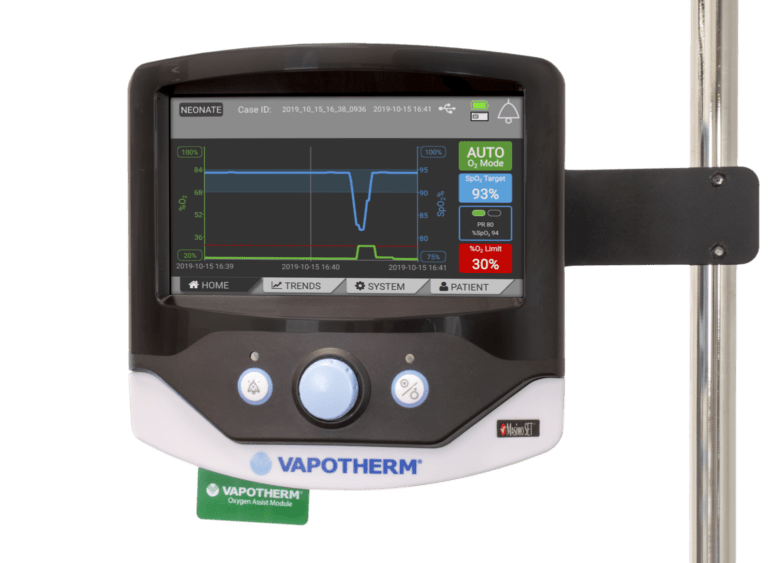 - One-button setup for fast, easy mask-free respiratory support.